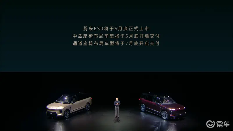 易车讯 4月9日,蔚来举行蔚来ES9产品技术发布会,发布会上蔚来ES9实车正式亮相并开启预售,整车购买预售价区间52.8-65.8万元起;电池租用方式购买预售价区间为42-55万元起。蔚来ES9将于5月底正式上市,中岛座椅布局车型将于5月底开启交付,通道座椅布局车型将于7月底开启交付。