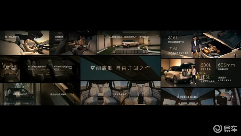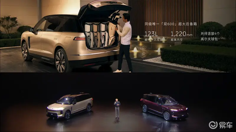 储物空间方面,蔚来ES9前备舱空间达到216L,后备箱空间为600L,其中后备箱进深达到606mm,拥有123L的超大下沉空间和1220mm的超高内部空间。