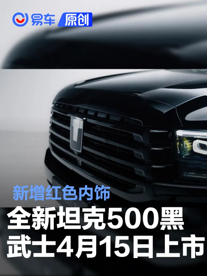 易车讯 我们从官方获悉,全新坦克500黑武士将于4月15日迎来正式上市,新车将延续硬派越野黑武士官改IP,还将采用全黑视觉体系、新增红色内饰。