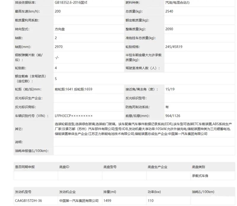 动力方面,全新红旗H7搭载1.5T插混系统,发动机型号为CA4GB15TDH-36,最大功率110kW,匹配磷酸铁锂电池组。