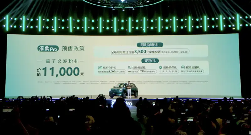 外观方面,缤果Pro采用最新的设计语言,呈现出一种简约复古的视觉冲击力。新车采用封闭式前脸,搭载极具辨识度的复古造型圆形大灯,内部光带采用三段式设计,点亮后科技感十足。
