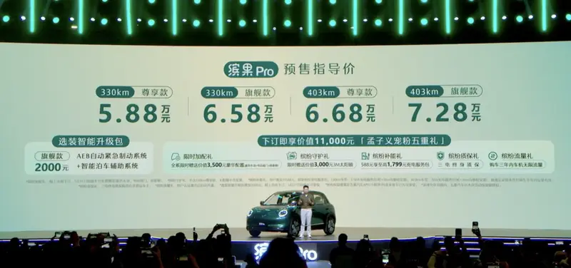 易车讯 4月14日,五菱缤果Pro正式开启预售,预售价5.88万元起 。新车采用了最新的设计语言,内饰搭载灵语智能系统,智能化显著提升。最大续航403km。