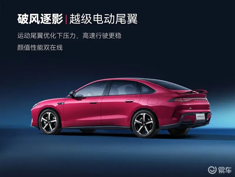 侧面来看,新车采用动感的溜背造型,配合造型时尚的五辐轮圈,动感十足。值得一提的是,新车采用了半隐藏式门把手设计。车身尺寸方面,新车长宽高分别为4916/1900/1480mm,轴距2876mm。尾部方面,新车同样搭载了贯穿设计尾灯组,并配备了可升降电动尾翼。