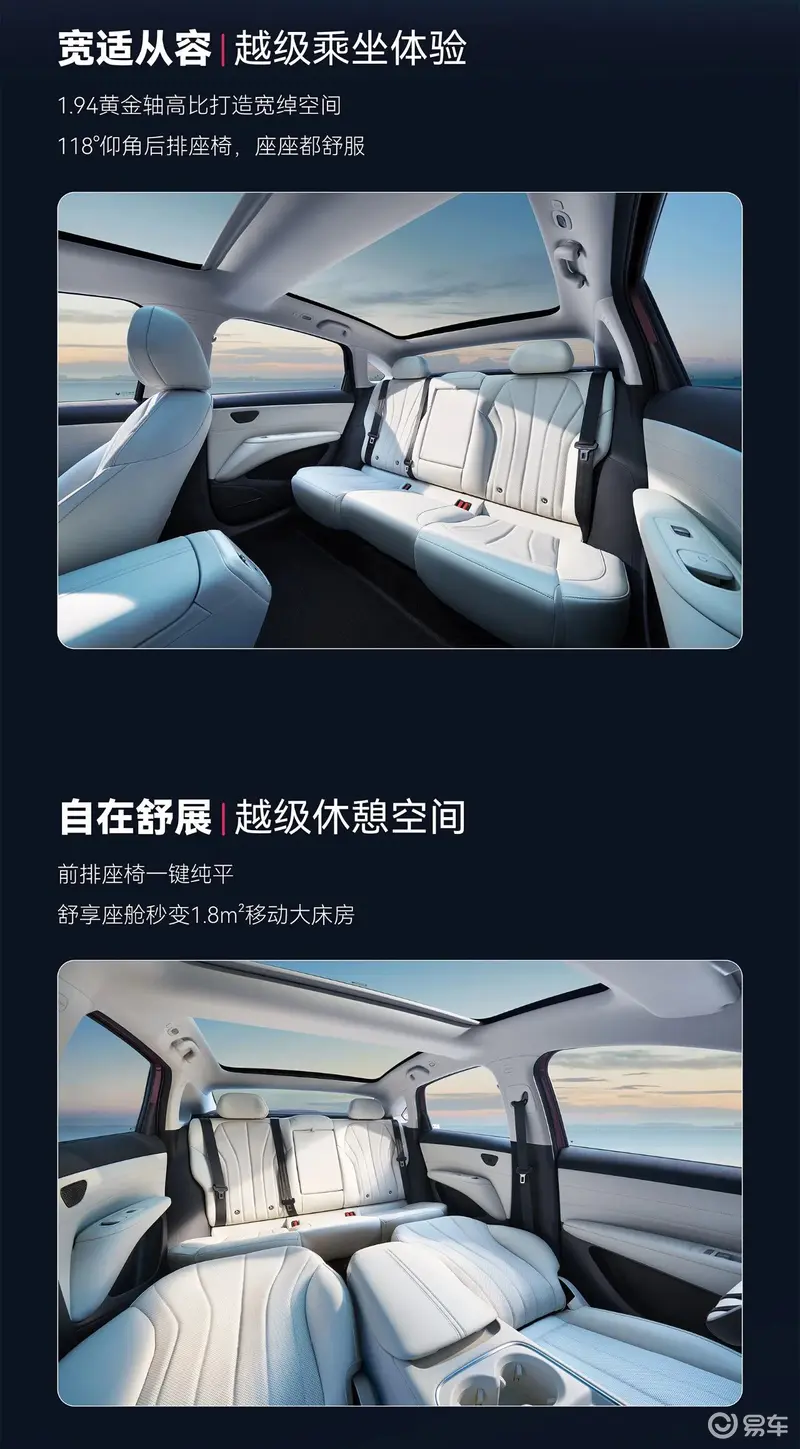 内饰方面,新车将采用简约化风格,大尺寸悬浮中控屏、手机无线充电等主流配置应有尽有。舒适性方面,新车前排座椅支持一键纯屏,还搭载了118度仰角后排座椅。