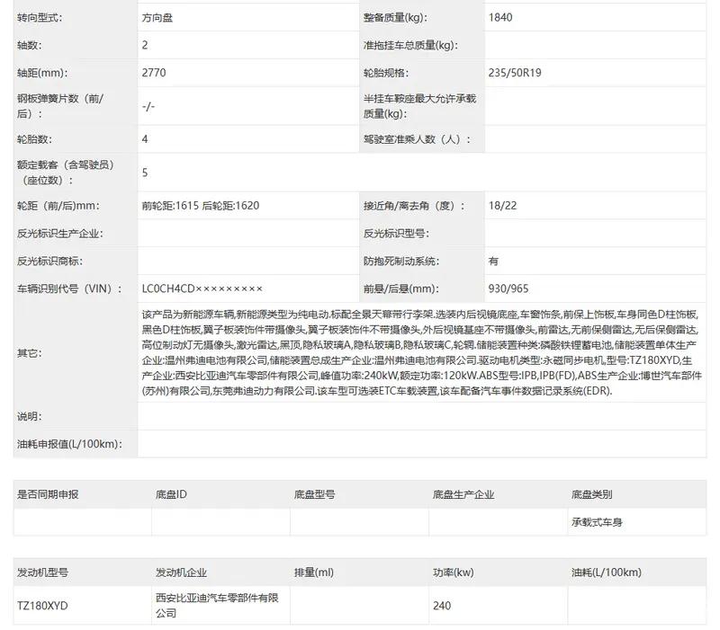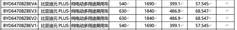 易车讯 在工信部最新一期减免车辆购置税的新能源汽车车型目录中,比亚迪全新元PLUS动力信息曝光。新车将搭载57.545kWh和68.547kWh两种容量的电池包,CLTC纯电续航分别为540km和630km。据悉,该车将于北京车展正式发布。