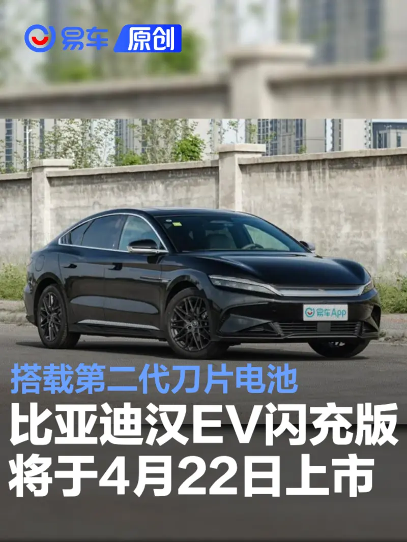 易车讯 近日,我们从官方获悉,比亚迪汉EV闪充版将于4月22日上市。新车搭载第二代刀片电池及闪充技术。目前该车已经陆续到店。