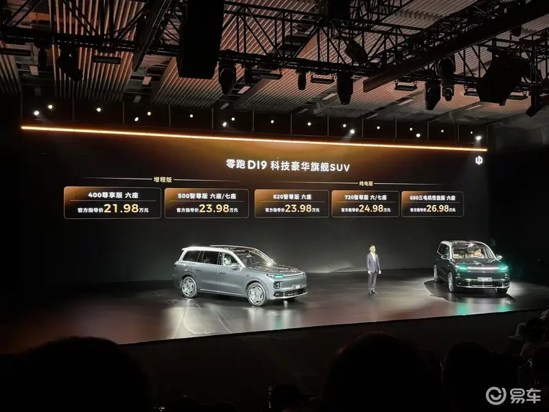 易车讯 4月16日,零跑汽车官方宣布D19迎来正式上市,新车共推出5款车型,售价区间21.98-26.98万元。新车为D平台首款车型,定位为全尺寸旗舰SUV,搭载高通骁龙双8797芯片,提供纯电及增程两种动力供选择。