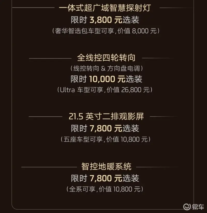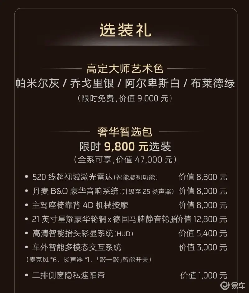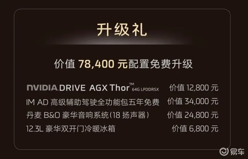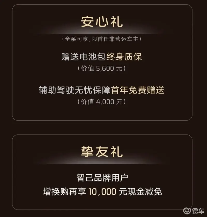 官方还推出了丰富的上市权益,包含3000元预付款可抵扣15000元现金、智己品牌车主增换购可减免10000元现金,此外还有价值78400元的升级礼以及安心礼和选装礼。