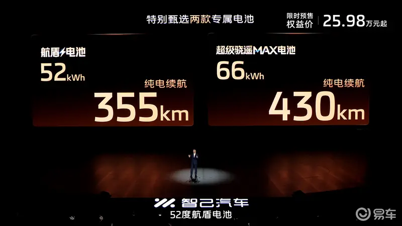 动力方面,新车搭载智己恒星超级增程系统,该系统由1.5T发动机与电动机组合而成,最大综合功率390千瓦,综合扭矩670N·m,搭载52kWh和66kWh两种容量的电池组,纯电续航分别为355km和430km,最大综合续航可达1605公里。新车全系标配800V碳化硅平台,将电量从30%充至80%仅需12分钟,零百加速成绩达到4秒级,百公里油电综合折算能耗仅为2.54L。
