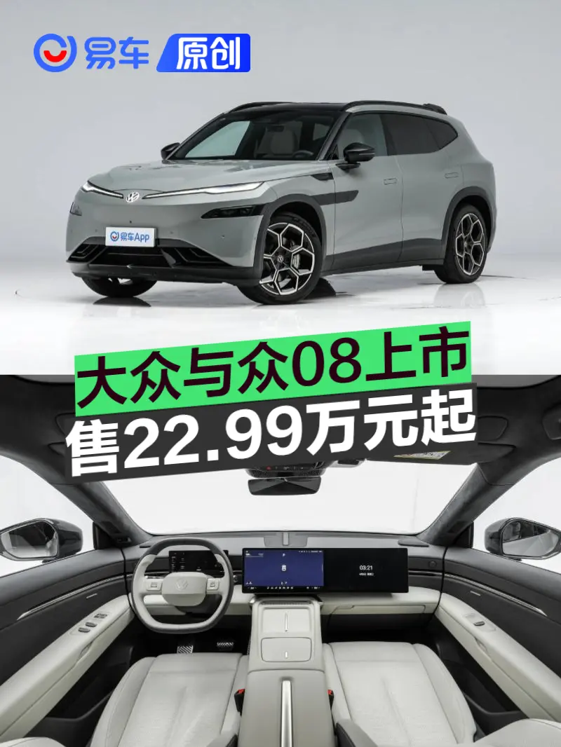 易车讯 4月16日,大众与众08正式上市,售价22.99-28.99万元。与众08是大众汽车与本土合作伙伴小鹏汽车联合开发的首款车型,车长达到5米,轴距达到3030mm。