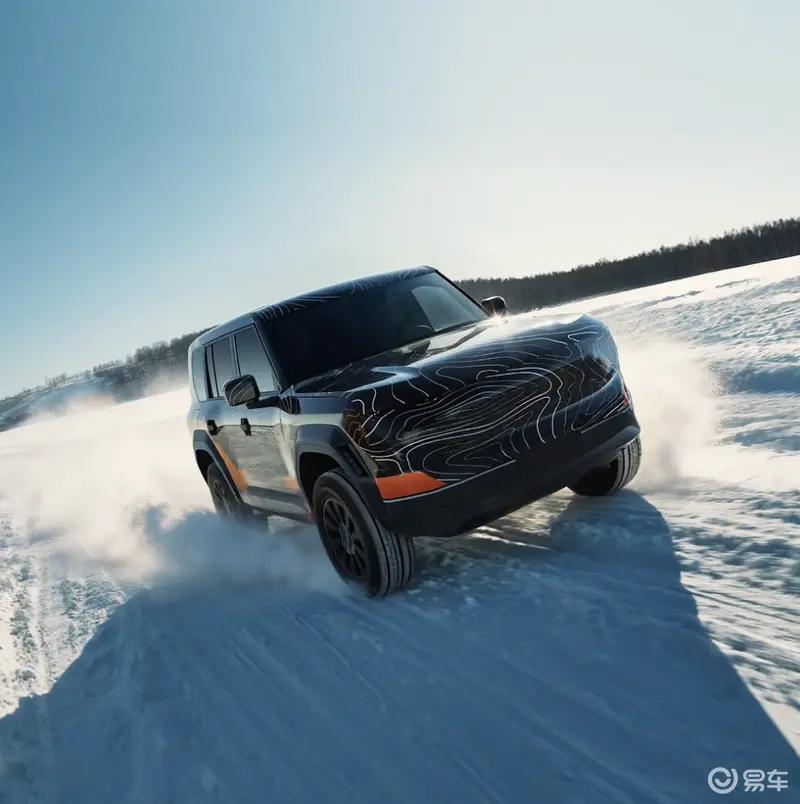 新车采用极具辨识度的方盒子设计语言,整车以平直硬朗的线条构建轮廓,搭配高车身、短前后悬的经典硬派比例,气场十足。前脸配备矩形大灯组与半封闭式格栅,融合新能源车型的科技感与硬派SUV的力量感;车顶集成激光雷达模组与行李架,既强化高阶智驾属性,又兼顾户外实用需求。