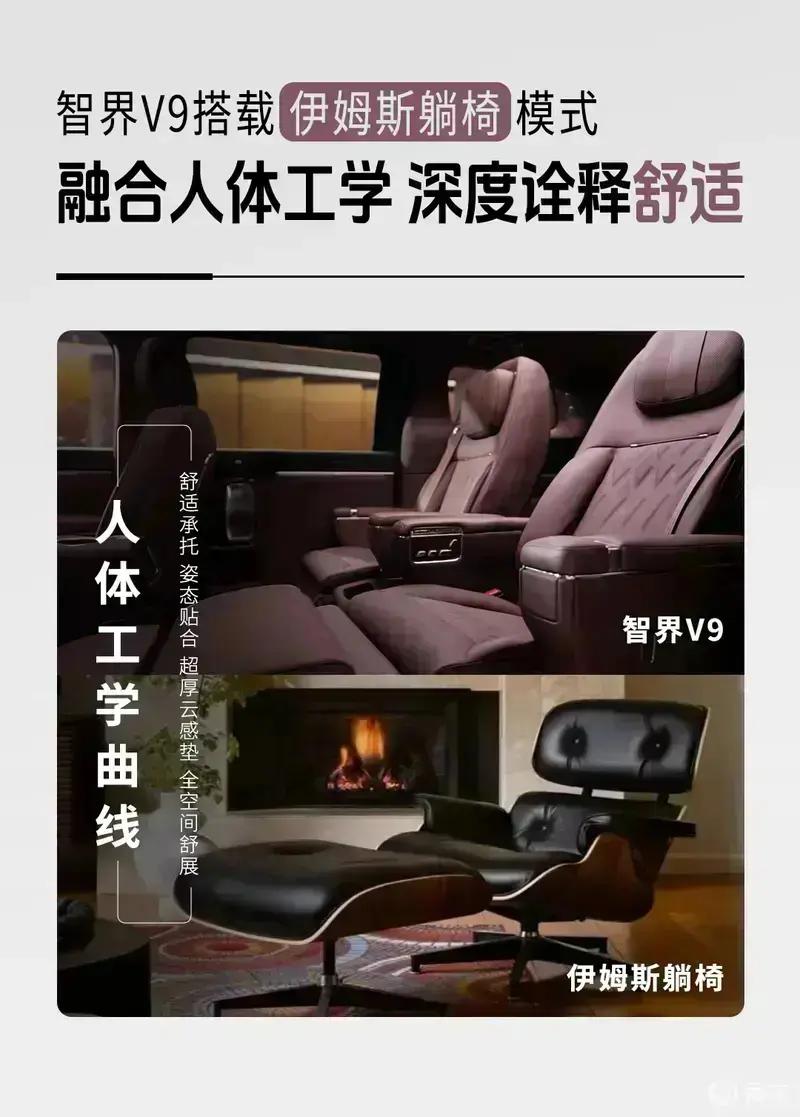 智界V9首发绒霞紫内饰,选用天然实木、NAPPA头层真皮与晶钻切工水晶等高端材质,豪华质感拉满。此外,新车还搭载二排旋转座椅、太空舒躺模式及零重力座椅模式等智能科技配置。