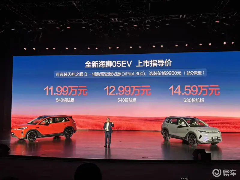 易车讯 4月20日,比亚迪官方宣布全新海狮05正式上市,新车共推出8款车型,售价区间9.79-14.59万元。同时,官方推出悦行守护套装限时特惠价1999元。作为全面焕新车型,该车搭载比亚迪二代刀片电池、闪充技术、天神之眼B等核心技术。