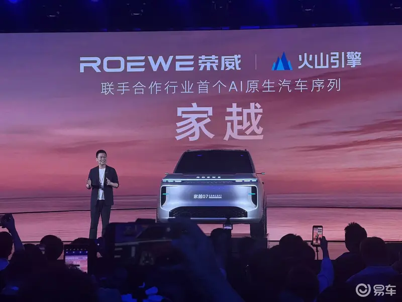 易车讯 2026北京车展开幕前夕,荣威在2026品牌之夜上,发布了与火山引擎深度合作的战略成果——全球首个AI原生汽车序列“家越”,三款重磅概念车联袂亮相。