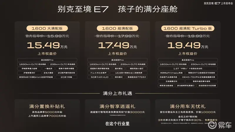 同时,官方推出满分上市礼遇分别为满分置换补贴礼、满分智享逍遥礼、满分用车无忧礼。