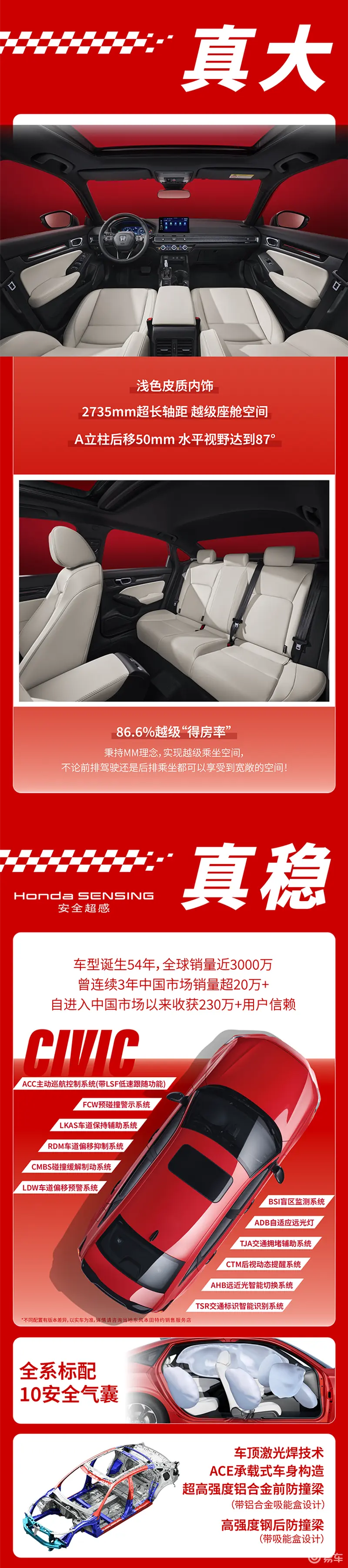 内饰方面,新车采用浅色皮质内饰,采用Honda CONNECT 4.0智导互联系统。20周年限定版车型还搭载皮质方向盘、皮质换挡把手、红色车内氛围灯等。安全配置方面,新车全系标配10安全气囊。