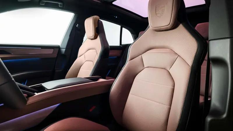 外观部分新车采用了保时捷纯电家族式的设计语言,尤其是车头线条以及四灯带日间行车灯设计,辨识度极高。前保险杠下方配备了纵向布局的百叶窗主动格栅,运动感十足。