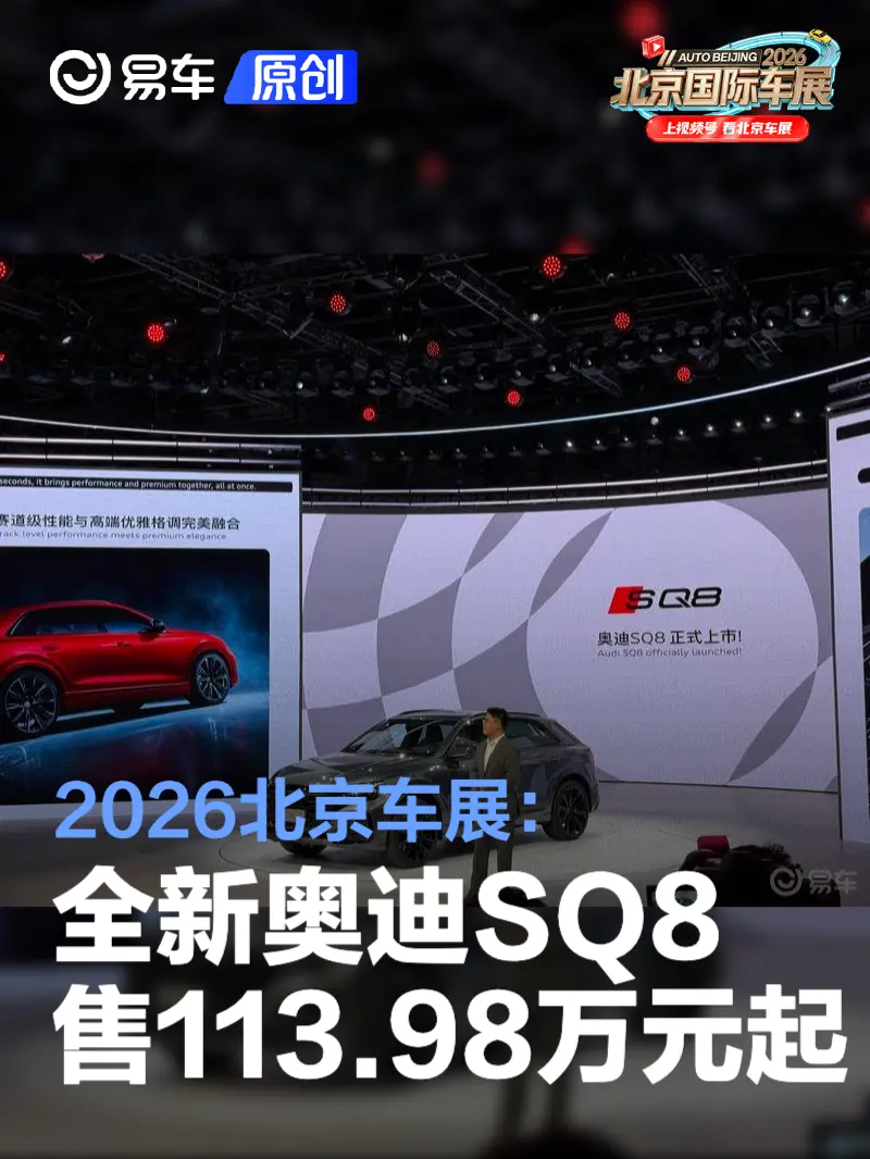 易车讯 在今日开幕的北京车展上,全新奥迪SQ8迎来正式上市,售价113.98万元起。新车将搭载4.0T V8双涡轮增压发动机,最大功率500马力。