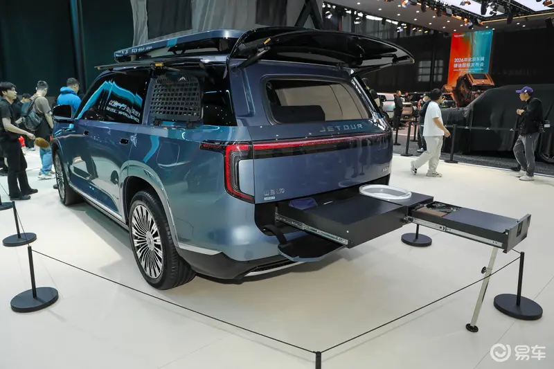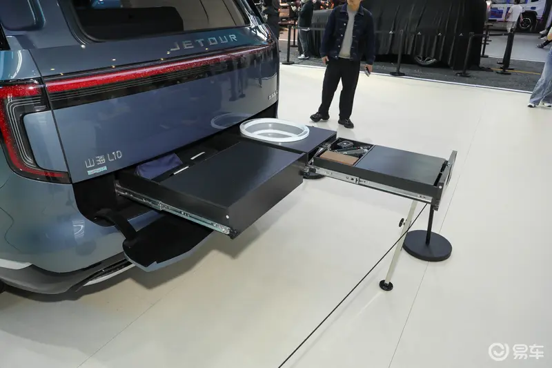 来到车尾,新车尾灯设计与头灯遥相呼应,但造型从C型变为了T型,看上去十分科幻。同时新车后尾门设计极具特点,推拉抽屉式的托盘设计可供车主拓展多种露营设备。动力方面,新车搭载C-DM插电混动系统。