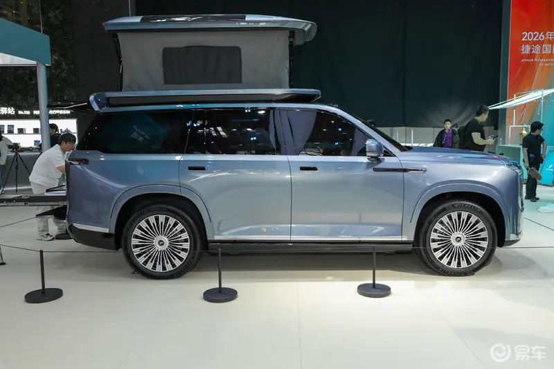 来到车身侧面,新车采用了内凹式门把手,轮胎尺寸达到了22英寸,尺寸为275/50 R22。另外新车车顶加入了原厂帐篷,可从天窗直接进入。