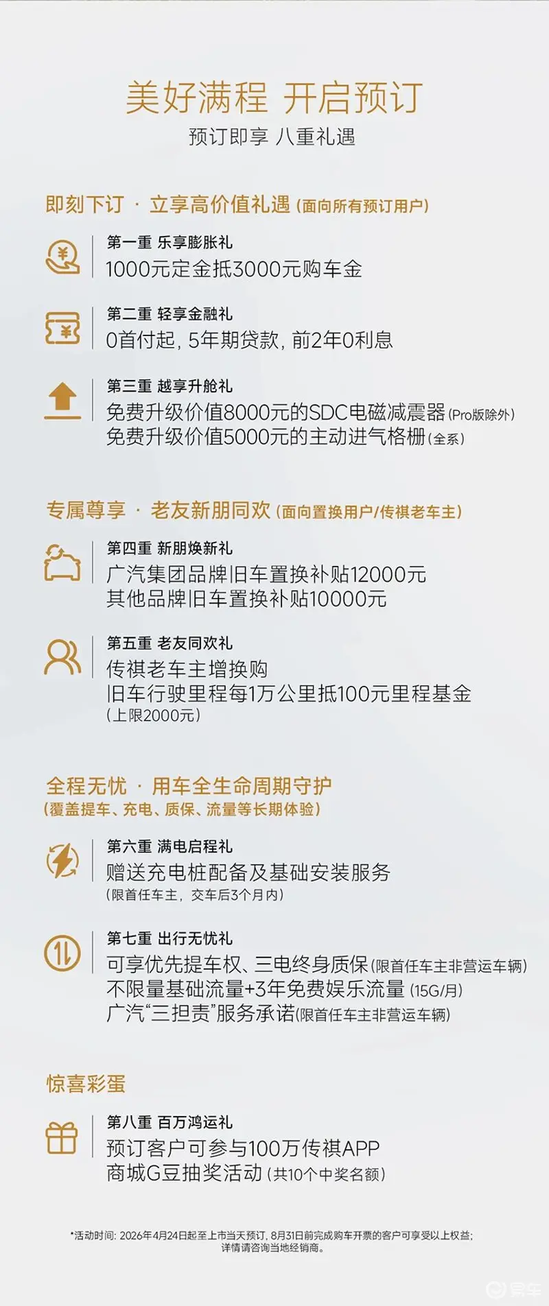 易车讯 今日开幕的北京车展上,全新一代传祺向往E8 PHEV正式亮相并开启预订,新车采用全新的外观设计语言,采用七座布局和1.5T插混动力,并可选装激光雷达。