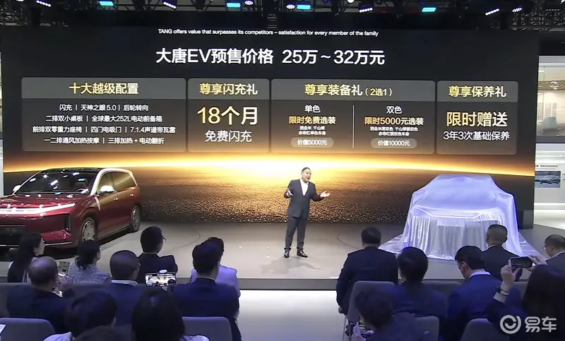 易车讯 在日前开幕的北京车展上,比亚迪王朝网首款D级旗舰SUV大唐EV开启预售,预售价区间25-32万元。新车搭载比亚迪第二代刀片电池、闪充以及天神之言等诸多黑科技,将于今年上半年正式上市。