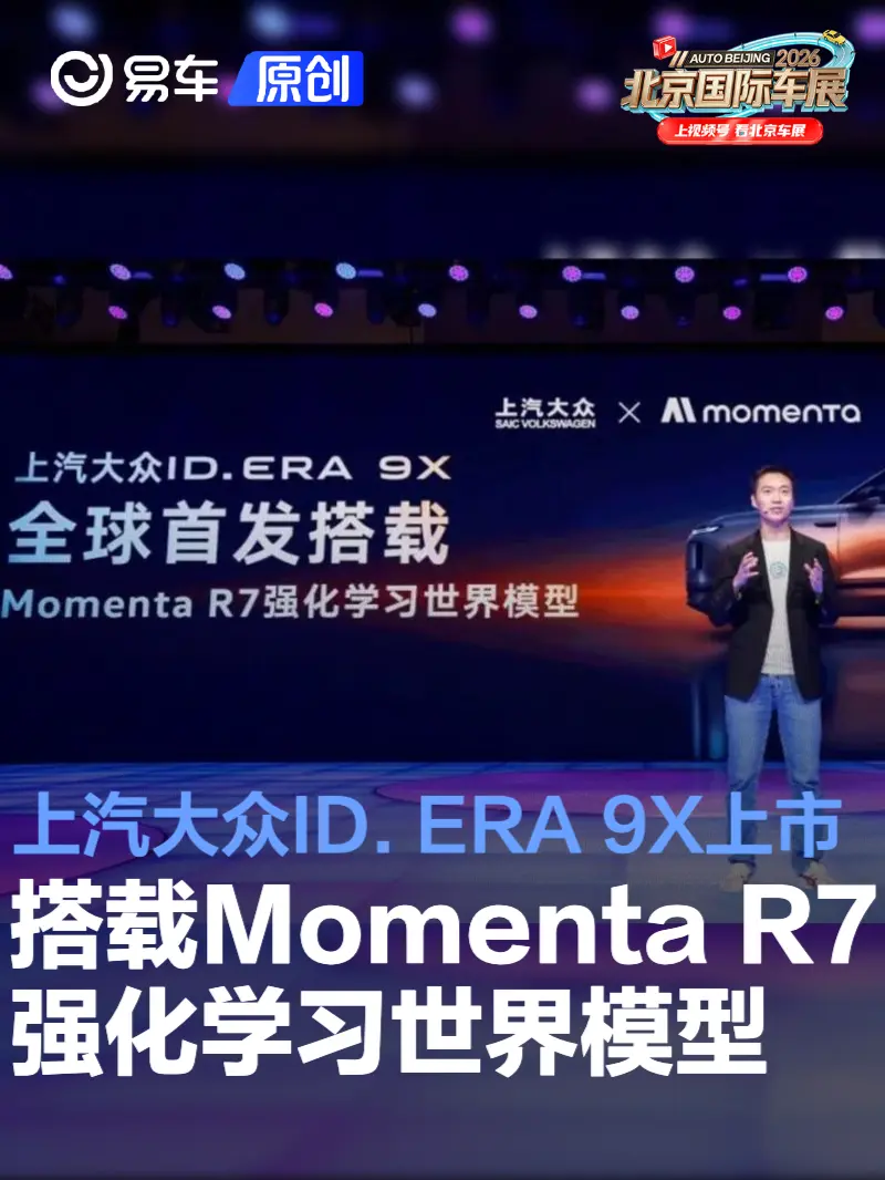 易车讯 2026年4月25日,上汽大众全新旗舰SUV ID. ERA 9X于2026北京国际汽车展览会期间正式上市,并将全球首发搭载Momenta R7强化学习世界模型。这意味着Momenta R7率先在全球强化学习+世界模型方向上取得量产突破——标志着物理AI上车。