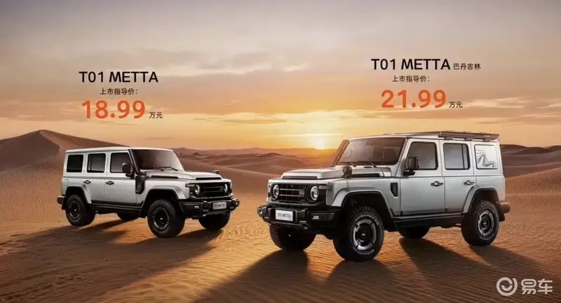 专为极限玩家打造的T01 METTA巴丹吉林版,以“沙漠珠峰”巴丹吉林命名,原厂即配备专业越野升级套件:车身升高1.5英寸、科曼可调氮气减震、33英寸百路驰KO3全地形轮胎,配合910mm高位涉水喉,从容应对沙漠、涉水等极限场景。外观上,一体式机械后爬梯、等高线盲窗等专属设计强化硬核气质。两款新车均经过超100万公里验证及±40℃、5500米高海拔测试,可靠性得到充分保障。