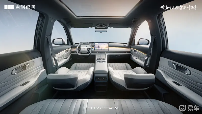 外观设计上,银河星舰7 EV前脸采用封闭式无格栅设计,搭配“银河涟漪”贯穿式日行灯,灯组内部32颗LED光源形成流水动态效果,横向延伸的黑色饰条将两侧分体式大灯衔接,大幅提升视觉宽度。车身侧面配备18/19英寸低风阻轮毂,机械式门把手与熏黑侧裙饰条相得益彰,风阻系数低至0.278Cd。车尾延续“旭日东升”贯穿式尾灯,与前脸设计形成呼应,后包围细节经过优化调整,整体风格更简洁纯粹。