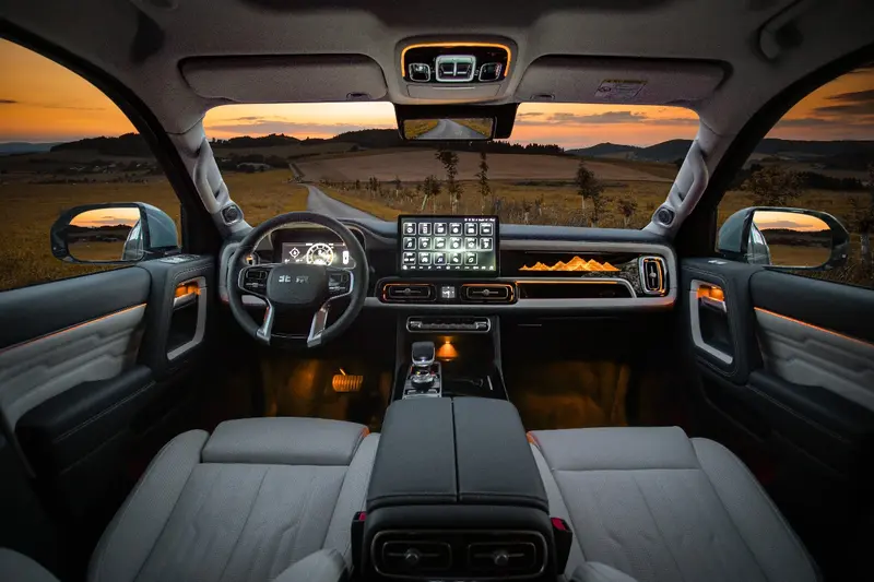 享越野——非承载车身、406Nm超大扭矩、分时四驱、“三把锁”、ATS、蠕行模式,硬核配置从低到高覆盖全系;四屏联动、双模导航、海拔、坡度、指南针等越野信息显示,获取更轻松;主被动安全和L2高阶辅助驾驶,时刻伴随。