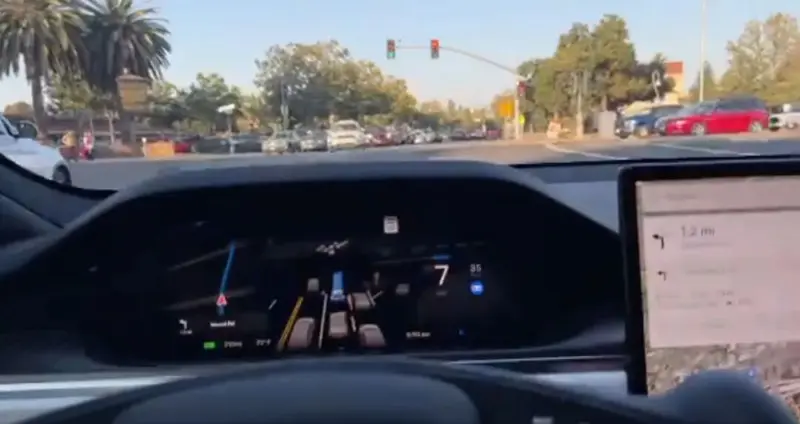 从他全程举起的手机视角可以看到,这辆Model S顺利通过无保护左转、斑马线、施工区域等复杂场景,遇到行人还可以等待让行,几乎可以应对全部路况,只有一次红灯没有停车而被接管。