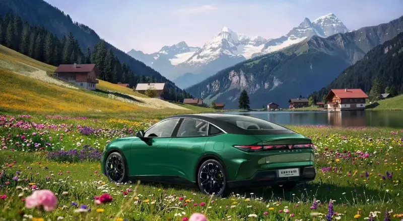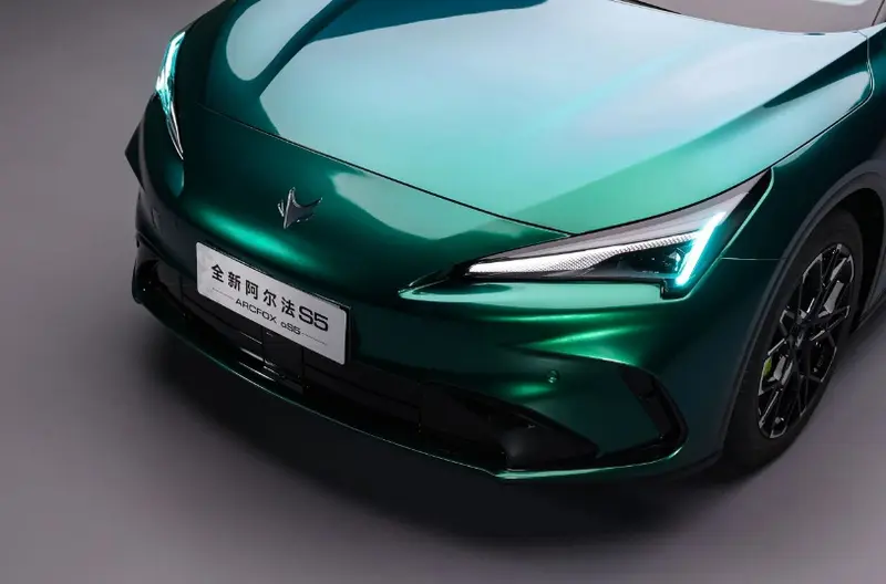 全新阿尔法S5车身比之前长了66毫米,接近4米9,轴距2米9。大溜背、无边框车门、亮色卡钳,还有个超大的升降尾翼,运动感拉满。车漆也很讲究,新增的幻影绿、瓦纳蓝、熔岩灰三种颜色,尤其是幻影绿,用了高端车才舍得用的涂料,阳光下有液态金属的感觉。