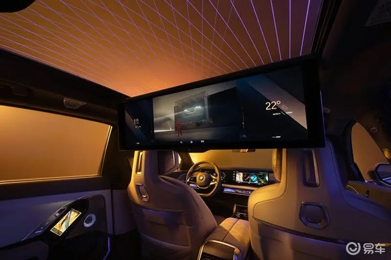 同时,7系作为旗舰车型也是应用创新科技的先锋,今天大家可以看到首次搭载的BMW悬浮式巨幕,辅以Bowers & Wilkins 4D钻石环绕音响系统,打造出家庭影院的效果,环抱式交互光带和隐藏式的空调出风口,也率先在7系中应用,之后部分设计亮点会应用在其它车型上。