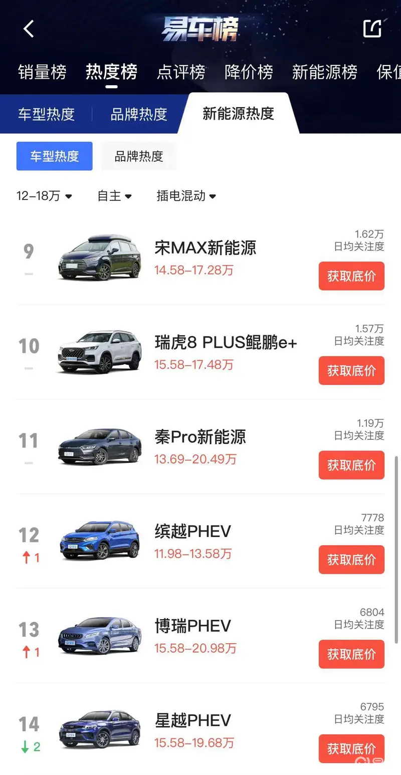 根据易车App“热度榜”数据,瑞虎8 PLUS鲲鹏e+的日均关注度为1.57万,在同级别竞品中排名第10位,如需更多数据,请到易车App查看。