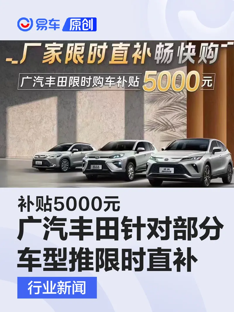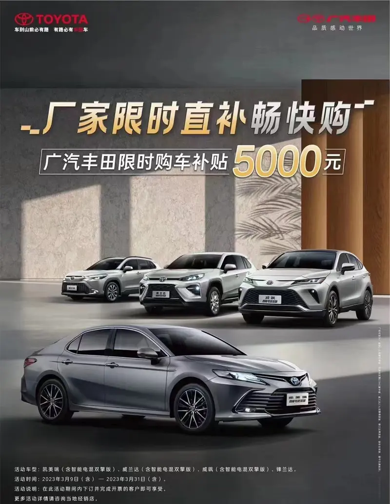 易车讯 3月9日,广汽丰田宣布即日起至2023年3月31日,开启厂家限时直补活动,限时补贴5000元。