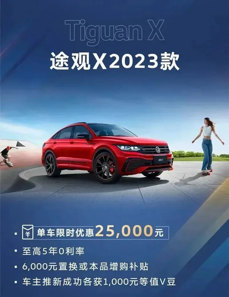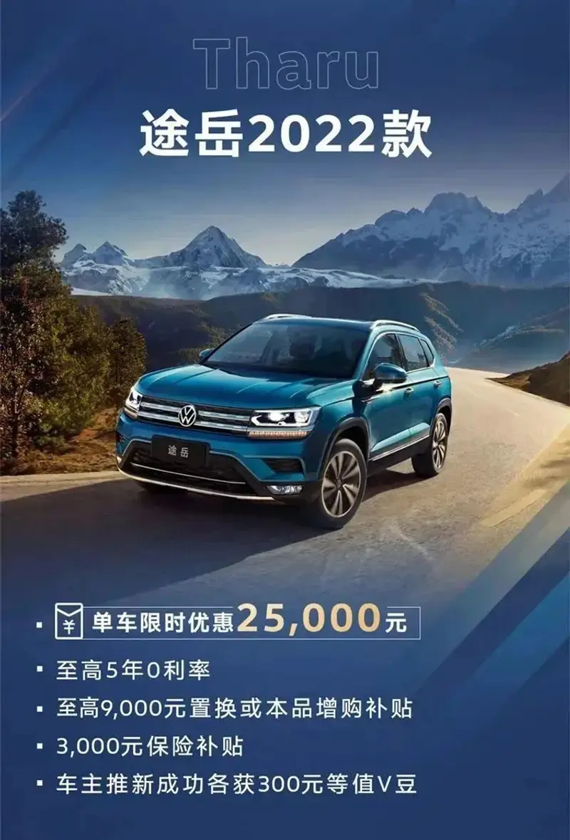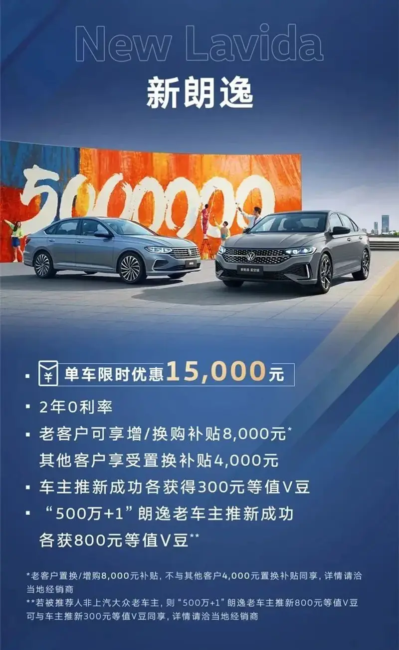 燃油车型方面,途昂车型限时优惠3.5万元;途昂X限时优惠3.5万元;朗逸限时优惠1.5万元;途铠限时优惠2.5万元;威然限时优惠3.5万元;凌渡L限时优惠1.5万元;途观L限时优惠2.5万元;途观X限时优惠2.5万元;朗逸启航限时优惠2.5万元;途岳限时优惠2.5万元;帕萨特限时优惠2.5万元;Polo Plus限时优惠1.5万元;辉昂限时优惠5万元;途安L限时优惠1.5万元;桑塔纳限时优惠2万元。