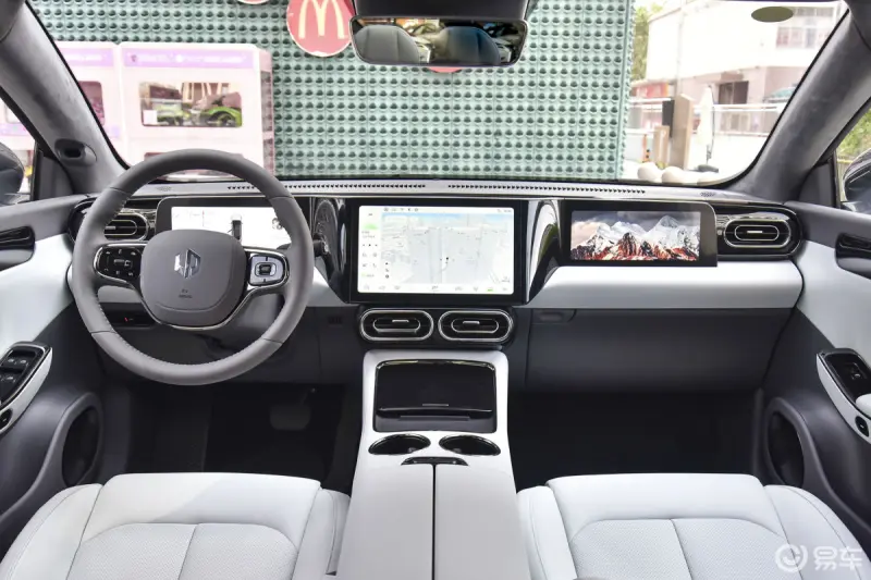 内饰延续了与零跑C11相同的三块大屏设计,不过与其它品牌贯穿式联屏不同,三块屏幕是分开的,有着各自功能区域。同时车内Leapmotor OS多媒体系统配备了高通车载SA8155P芯片,可实现人脸ID识别启动、自动适配设置、深度AI智能学习进化等功能。