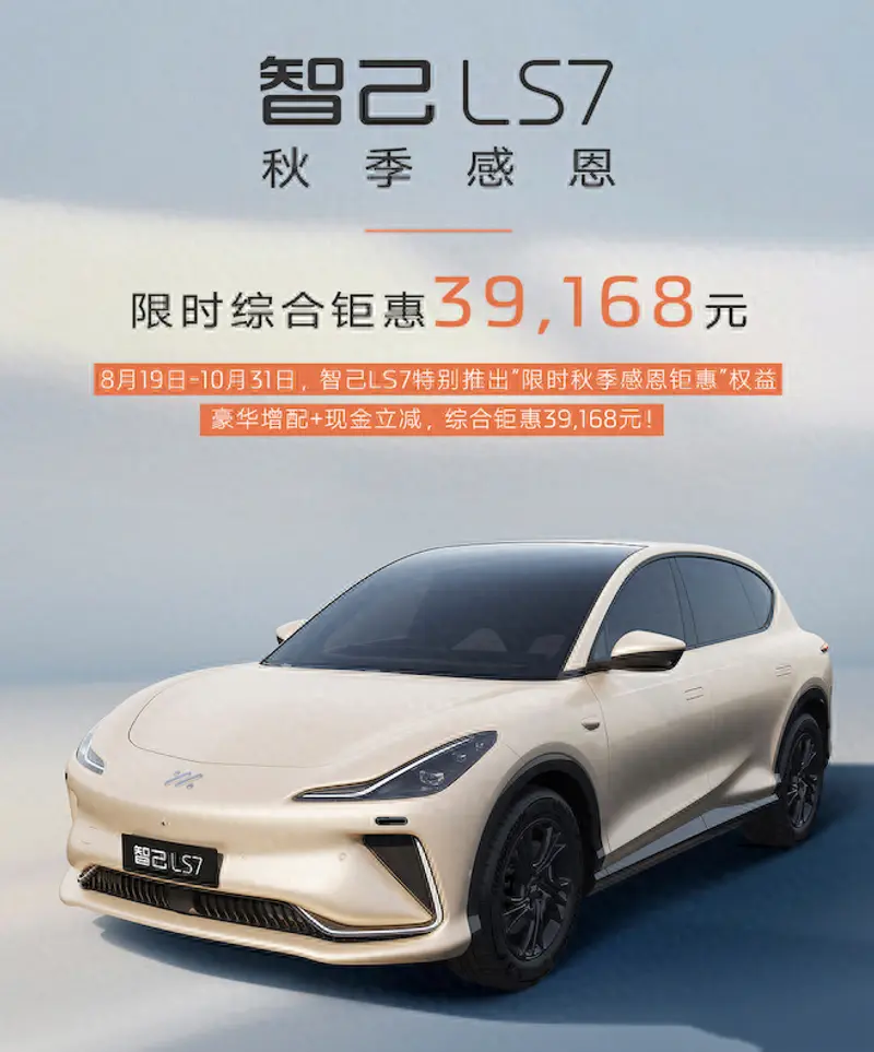 易车讯 我们从官方获悉,智己LS7推出限时购车政策,8月19日-10月31日期间购买智己LS7,可享豪华增配+现金立减,综合优惠幅度达3.9万元。