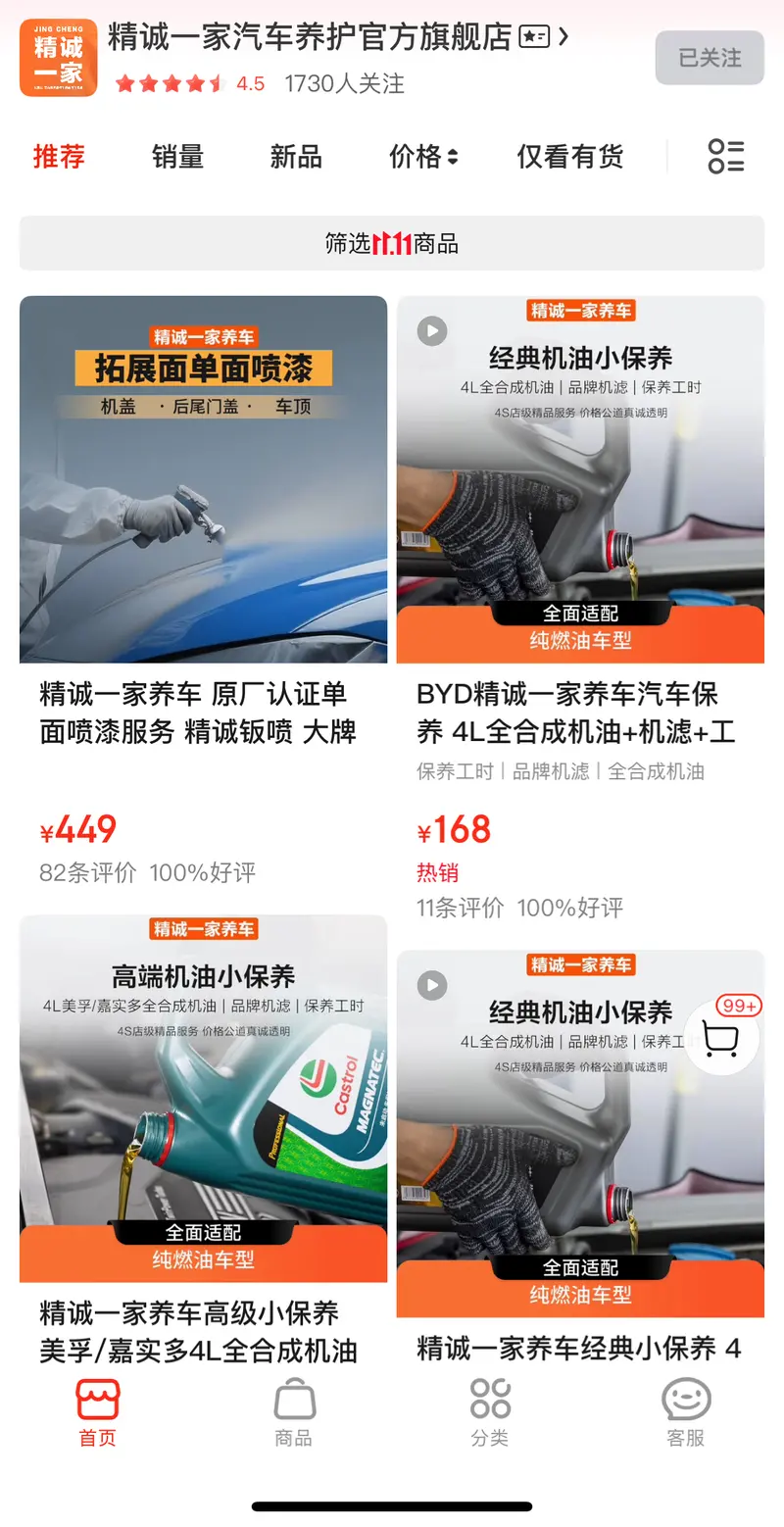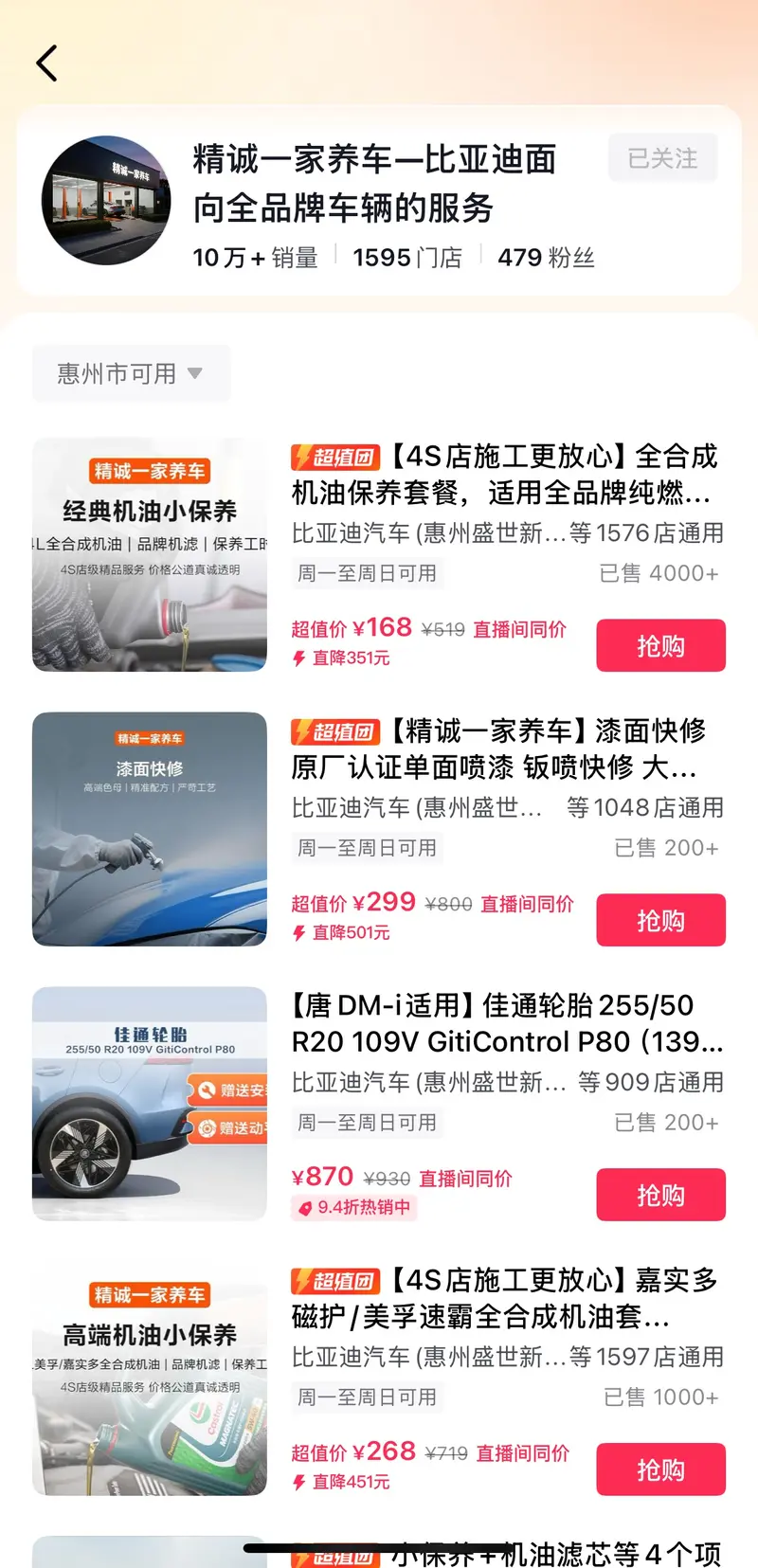“精诚一家养车”此前已入驻抖音与京东,近一个月内GMV突破百万。电商平台的布局,意味着比亚迪“精诚一家养车”正式为所有品牌车辆提供养车服务,利用主机厂资源优势与4S级服务品质。