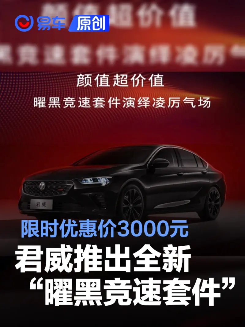 易车讯 10月10日,别克君威正式推出全新“曜黑竞速套件”,官方定价7899元,限时优惠价3000元。套件专属竞速红运动内饰同步首发,选购套件即可免费解锁专属内饰配色,为用户量身打造专属的运动身份标识。