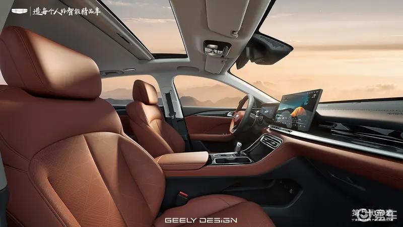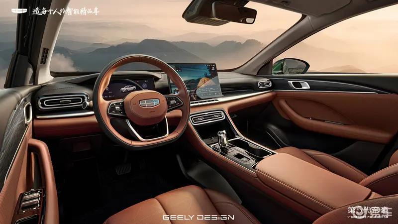 内饰方面,第5代帝豪采用了最新设计风格,无论是质感还是科技性上都有了显著提升。新车中控台采用最新设计,空调出风口造型更加前卫,精致的镀铬装饰配合棕色中控包裹,视感十足。新车中控台配备了更大尺寸的悬浮式中控屏和液晶仪表。