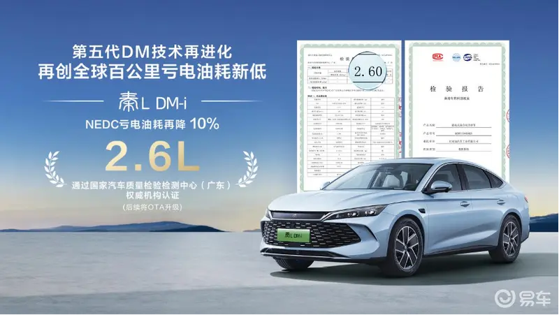 易车讯 10月13日,我们从官方获悉,比亚迪第五代DM技术油耗再进化OTA正式开始推送 ,升级后车型的NEDC百公里亏电油耗进一步降低10%,百公里亏电油耗低至2.6L。据悉,OTA升级首批推送为秦L DM-i智驾版车型,非智驾版车型将在第四季度推送。