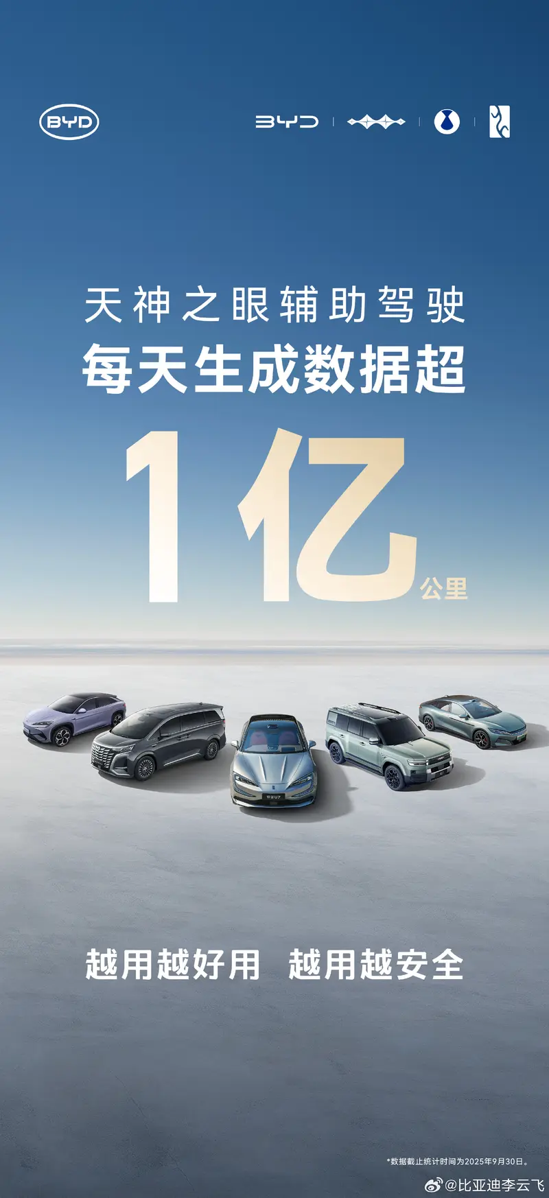 天神之眼辅助驾驶每天生成数据超1亿公里 累计销量超170万 2025-10-15 19:08 来源:汽车产经网 作者:易车原创报道 举报 易车讯 10月15日,比亚迪集团品牌公关处总经理李云飞在微博上表示,天神之眼辅助驾驶每天生成数据超1亿公里。 同时,李云飞表示,比亚迪天神之眼智驾车型累计销量超170万辆。