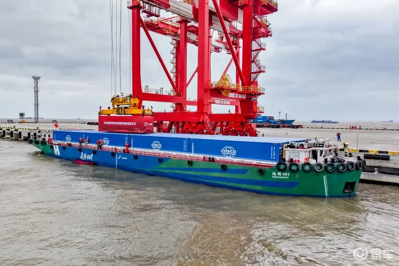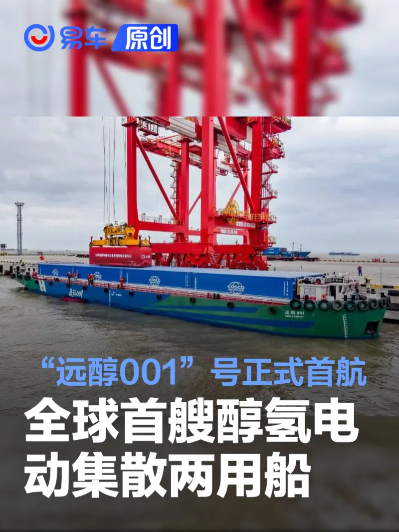 易车讯 日前,全球首艘醇氢电动集散两用船首航仪式在上海港罗东集装箱码头成功举办,“远醇001”号正式首航开启商业运营。