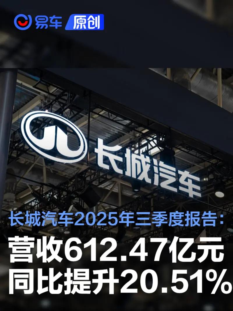 易车讯 10月24日,长城汽车股份有限公司(股票代码:601633.SH,02333.HK,82333.HK;以下简称“长城汽车”)发布2025年第三季度报告。报告期内,公司营收612.47亿元,同比提升20.51%,环比提升17.07%,为历史最佳第三季度营收表现。