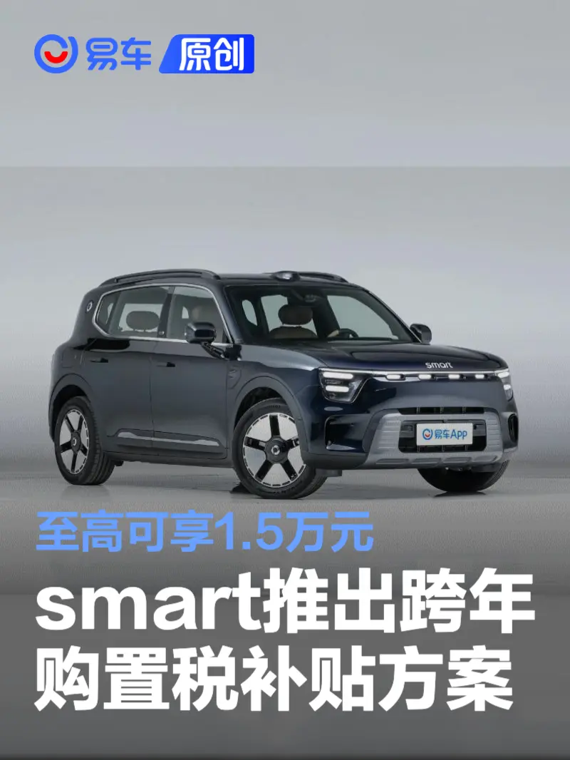 易车讯 今日,smart正式推出“全系跨年购置税补贴方案”,根据实际购买价格产生的购置税,在2026年较2025年多出的差额,以购车尾款减免方式进行补贴,至高1.5万元。