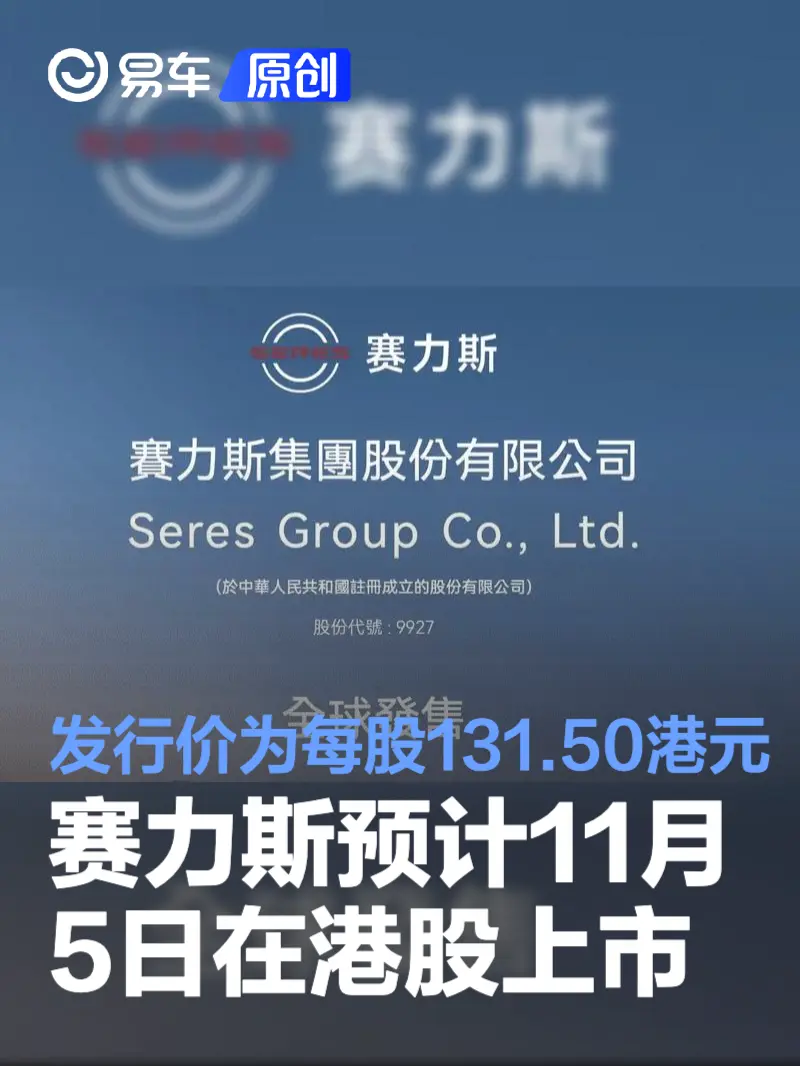 易车讯 11月3日,赛力斯发布关于H股公开发行价格的公告,公告显示,公司已确定本次H股发行的最终价格为每股131.50港元。公司本次发行的H股预计于2025年11月5日在香港联交所主板挂牌并开始上市交易。
