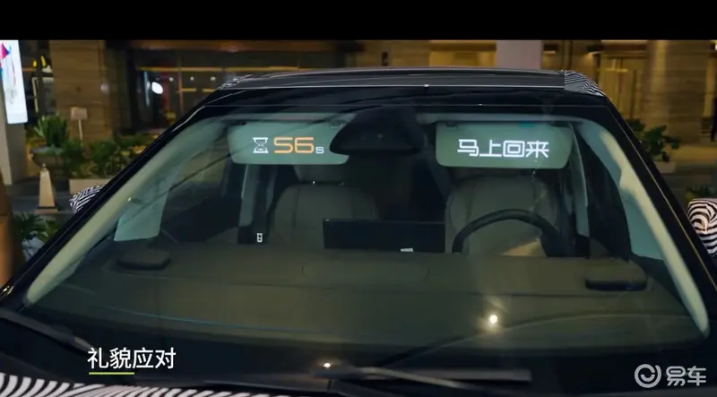 从预告视频能看到,小鹏Robotaxi在迎宾&泊出车位场景中,遮阳板上出了可实时显示泊车进度外,还能显示问候表情包与行人进行互动。此外,小鹏Robotaxi车外显示还可提供SOS守护,甚至显示充电补能进度。