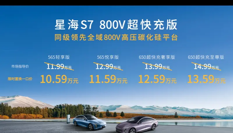 易车讯 11月5日,我们从官方获悉,2026款东风风行星海S7纯电版开启预售,预售价格11.99万-14.99万元,限时置换一口价10.59万-13.59万元。新车采用全域800伏碳化硅,续航里程分别为565km与650km。