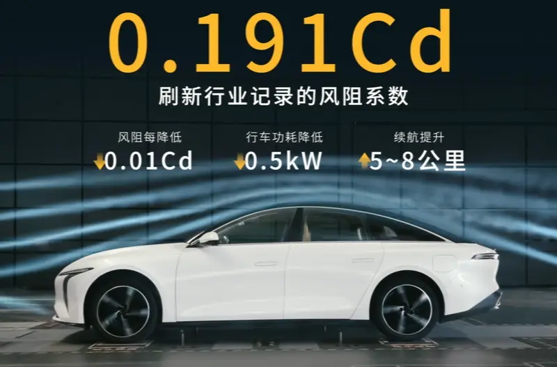 车身侧面,新车整体车身面板均采用了较为平整光滑的曲面设计,配备了无边框车门,并搭配了隐藏式门把手,整车风阻系数为0.191Cd。尾部方面,新车配备了贯穿式的尾灯组,点亮后极具辨识度。